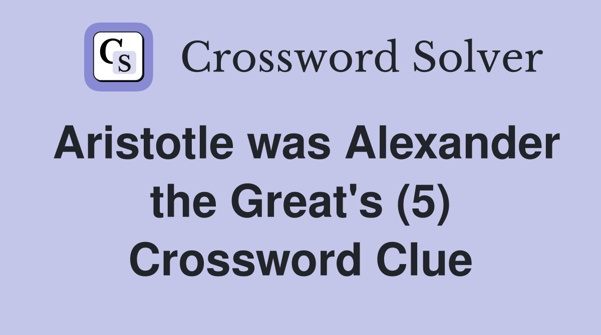 Aristotle was Alexander the Great #39 s (5) Crossword Clue Answers