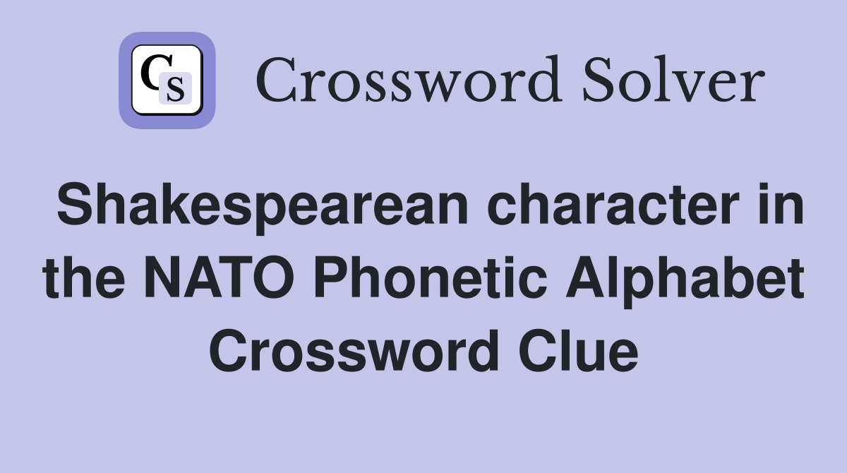 Shakespearean character in the NATO Phonetic Alphabet Crossword Clue