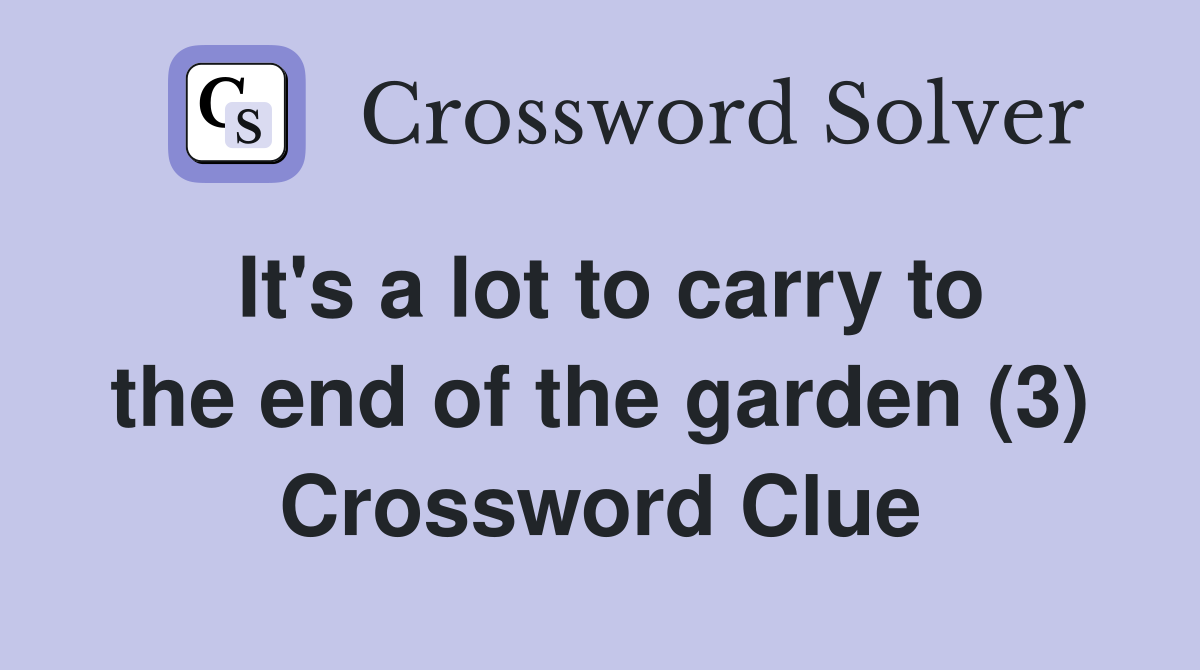 It s a lot to carry to the end of the garden (3) Crossword Clue