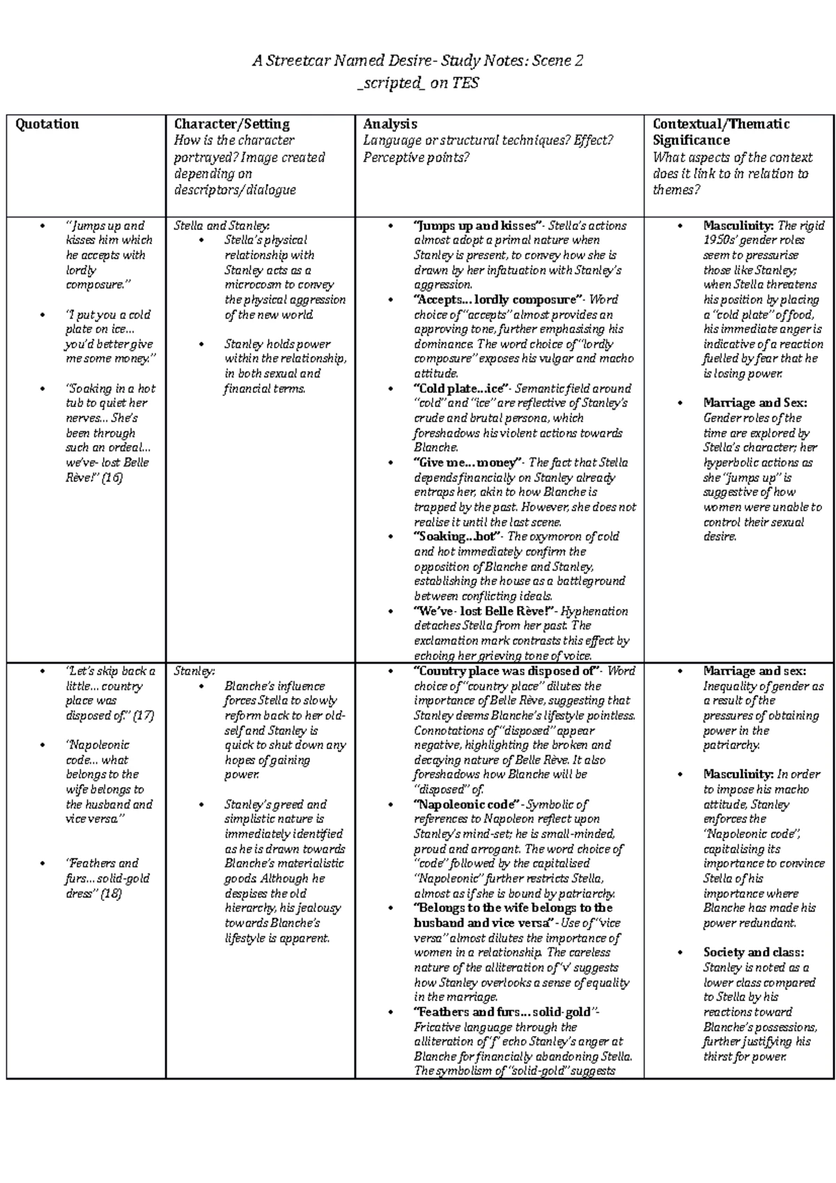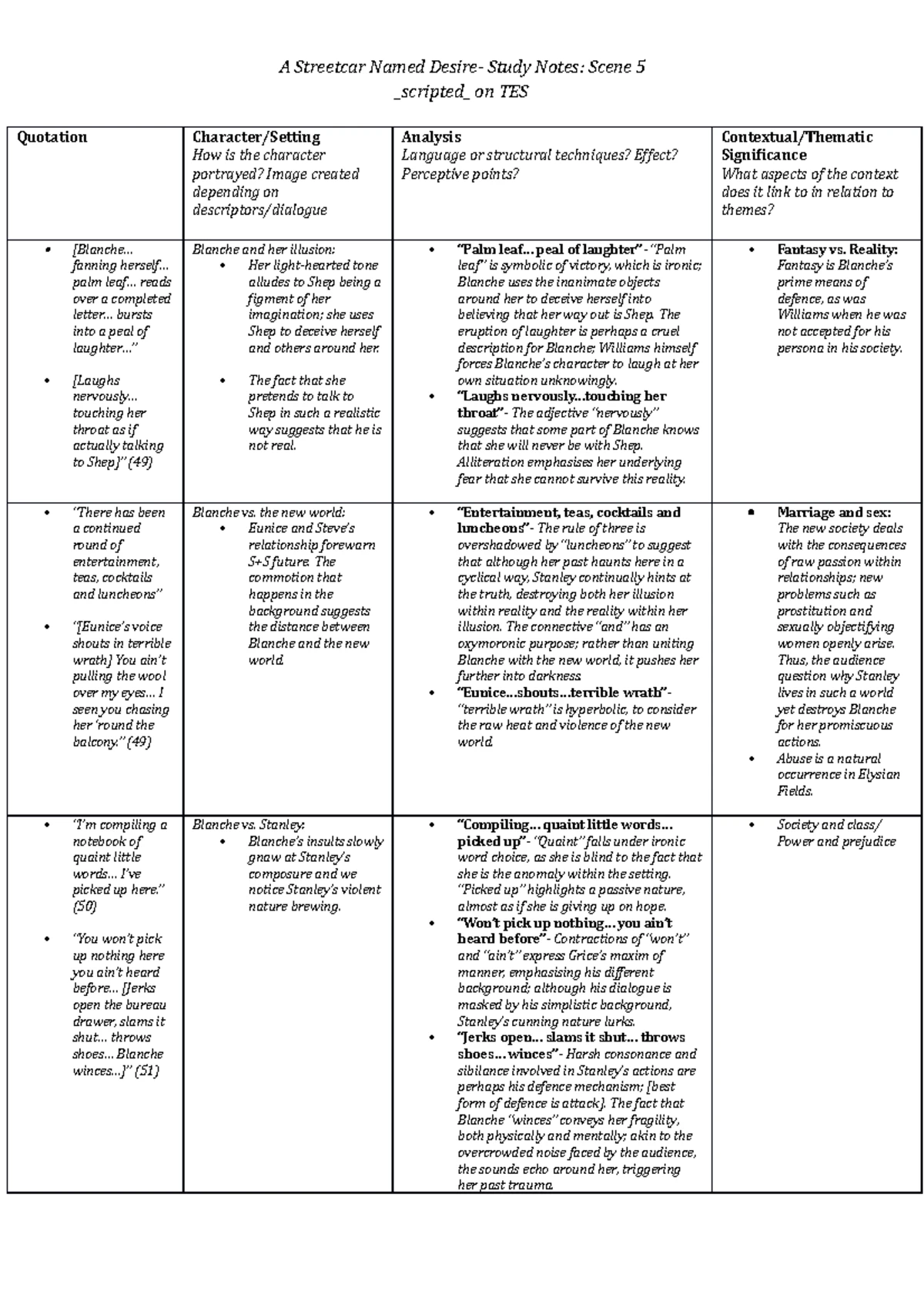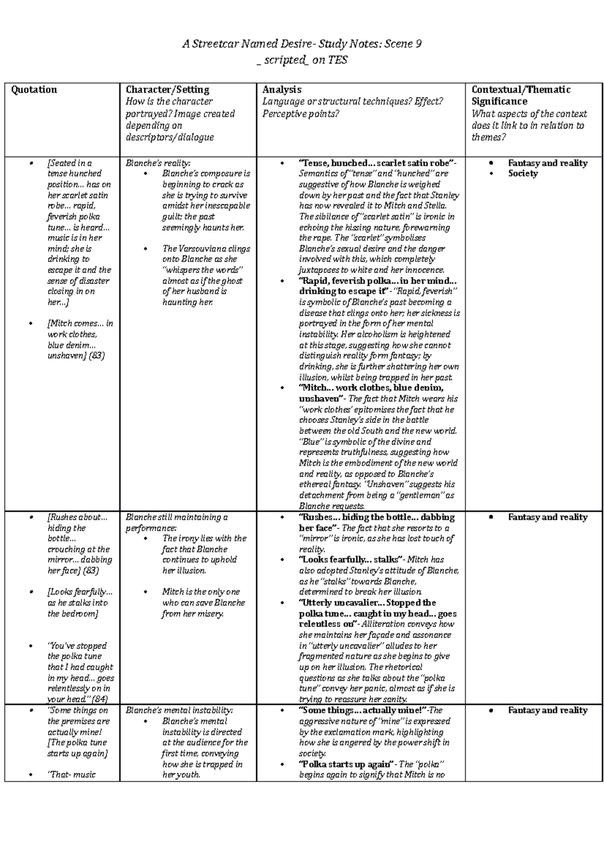 A Streetcar Named Desire: Key Quotes from the Play Analysis Studocu