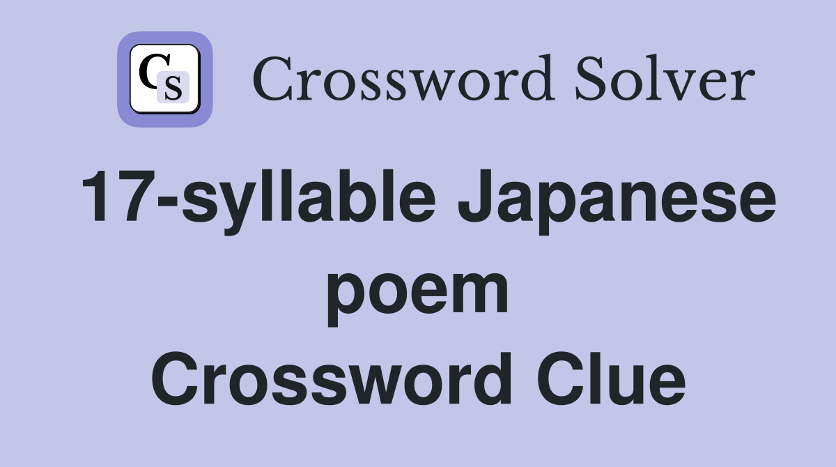 17 syllable Japanese poem Crossword Clue Answers Crossword Solver