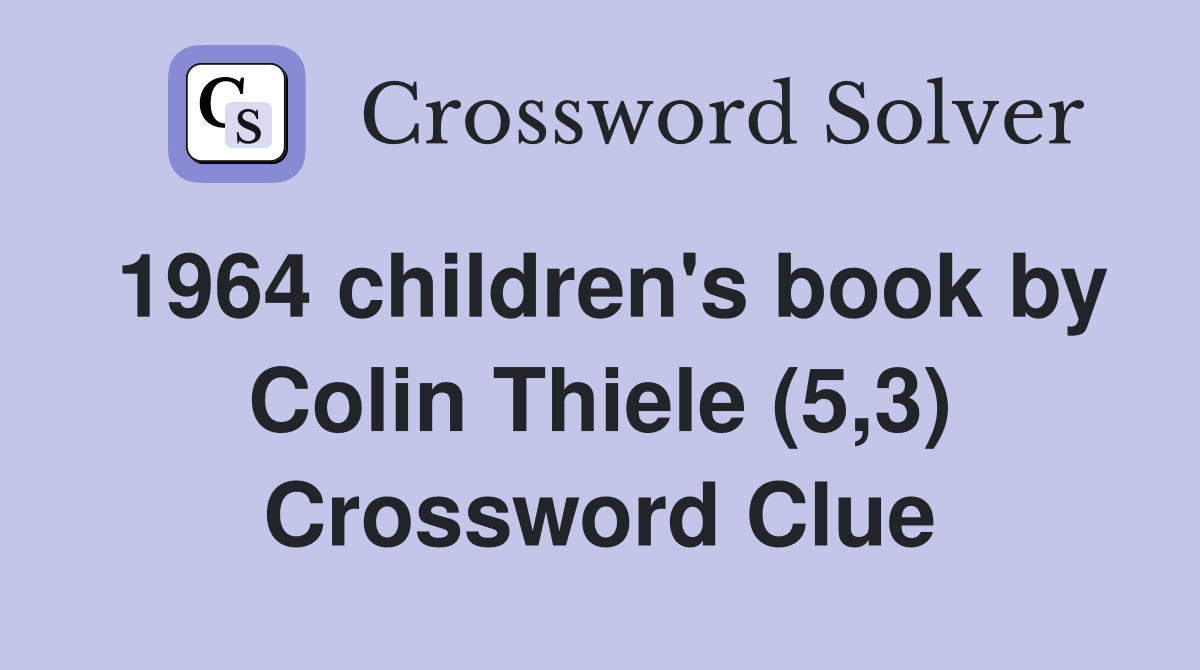 1964 children #39 s book by Colin Thiele (5 3) Crossword Clue Answers