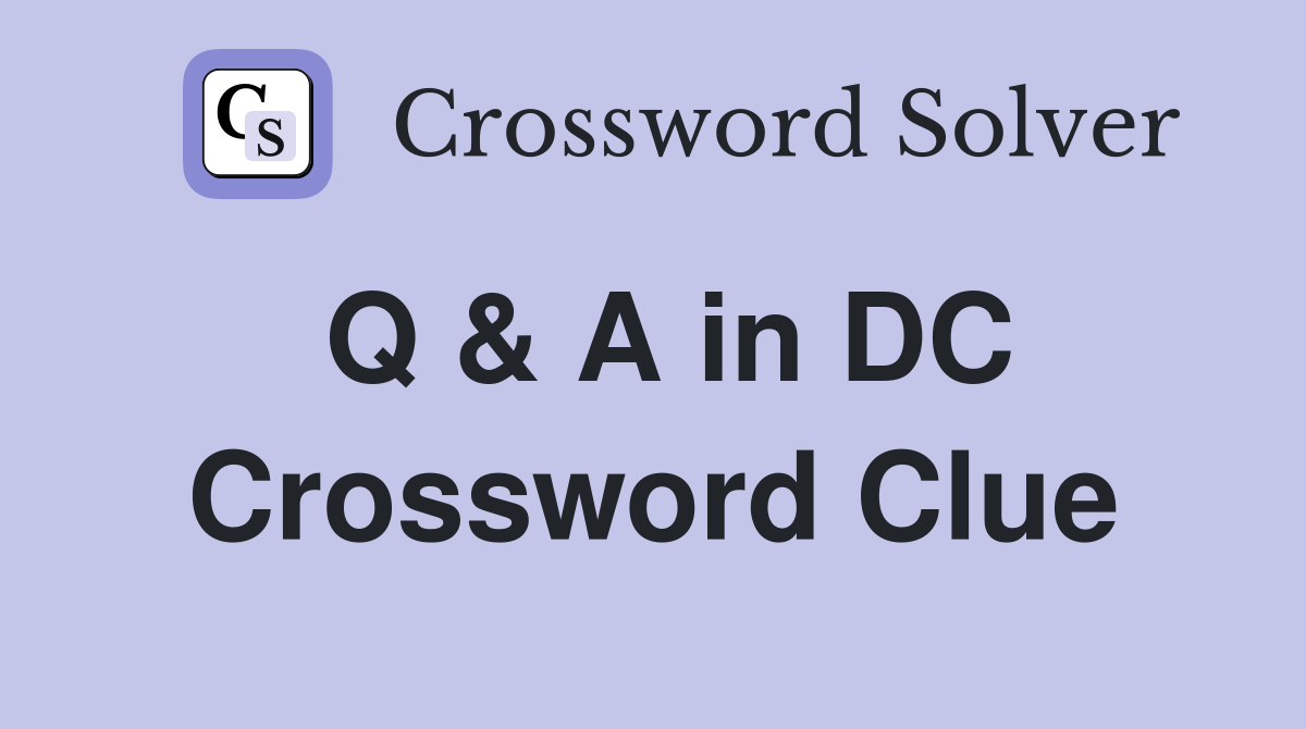 Q A in DC Crossword Clue Answers Crossword Solver