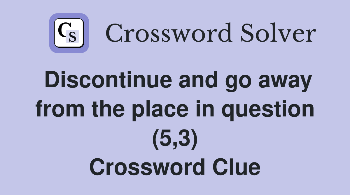 Discontinue and go away from the place in question (5 3) Crossword