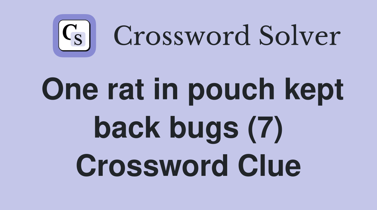 One rat in pouch kept back bugs (7) Crossword Clue Answers