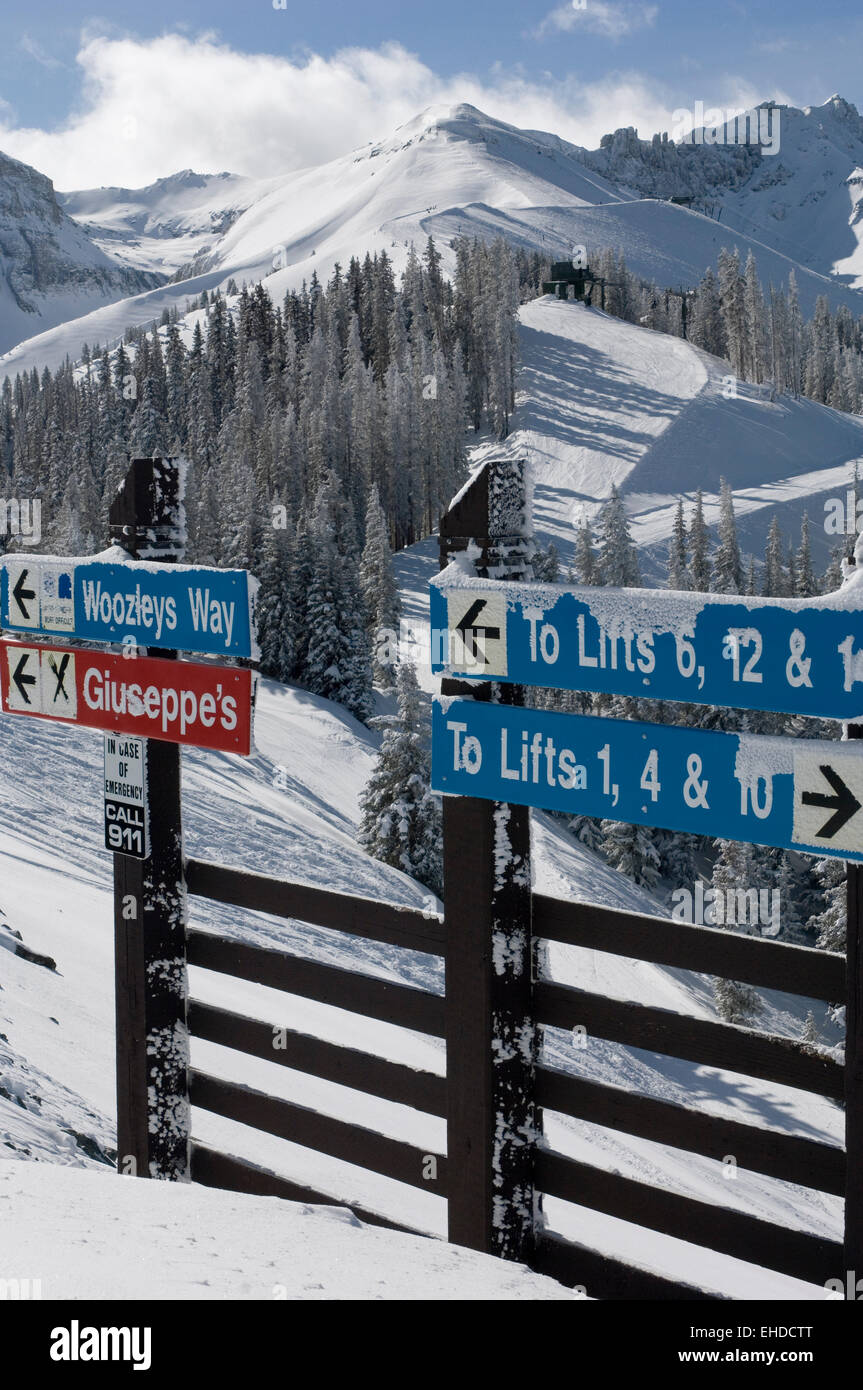 Trail markers for Giuseppe #39 s and Woozley #39 s Way ski runs Telluride