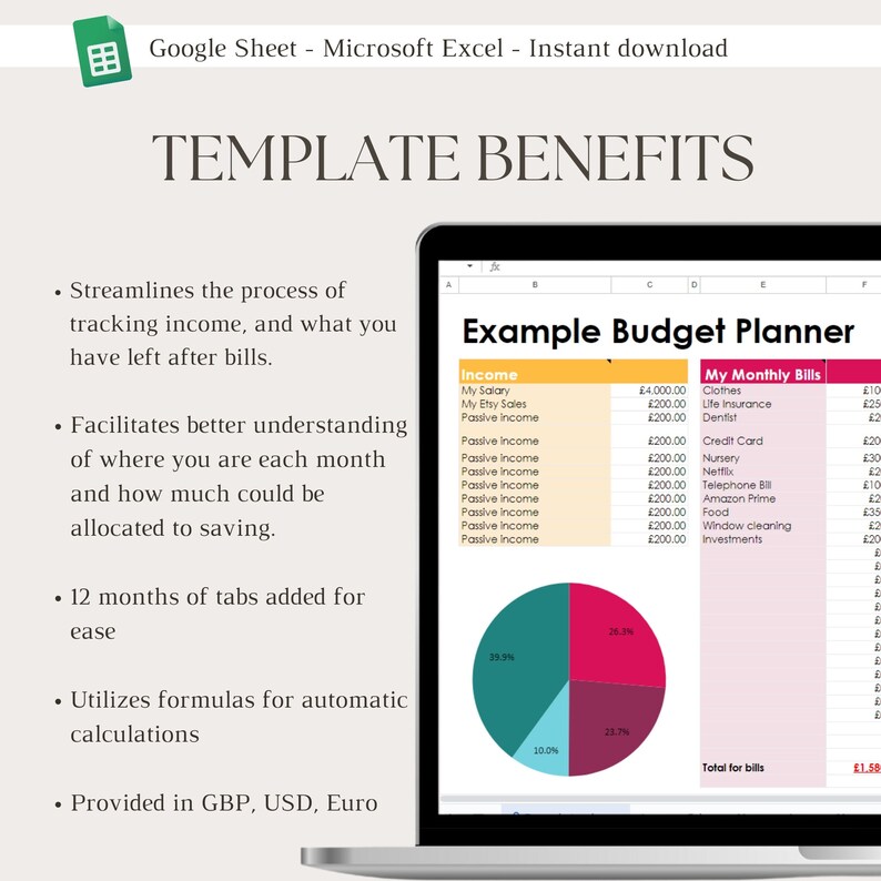Monthly Budget Google/excel Template Finances Tracker Google Sheet