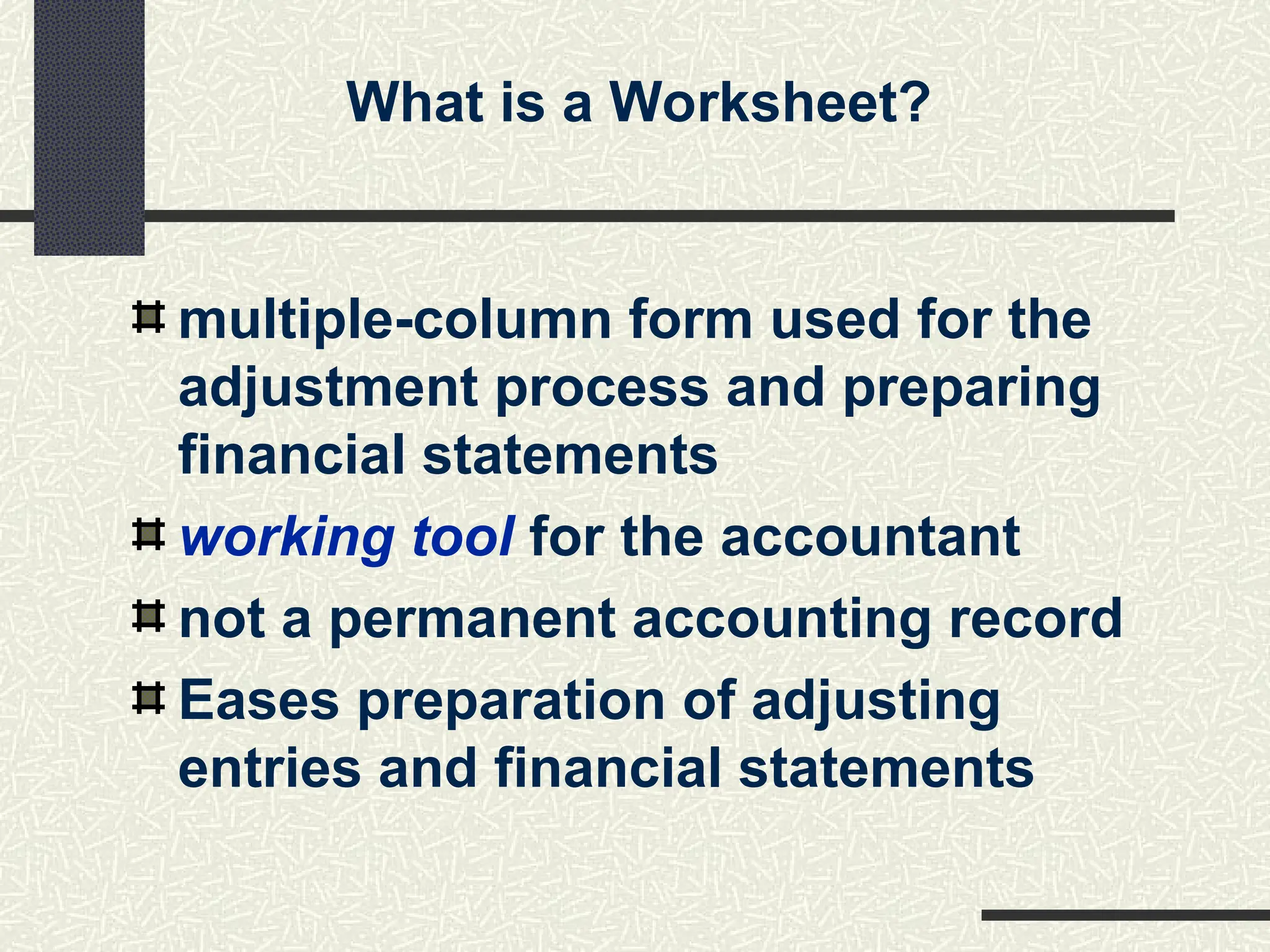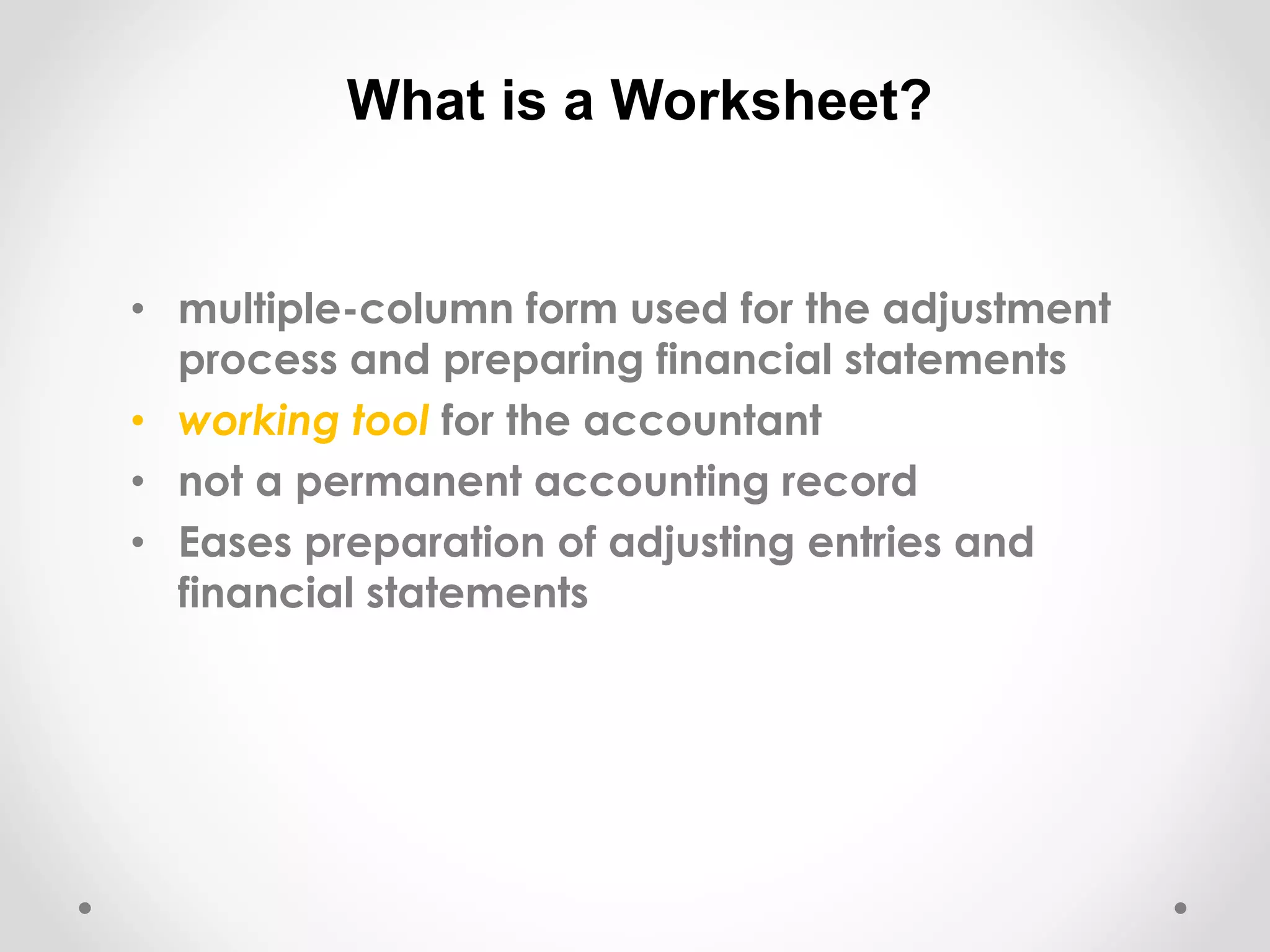 A Worksheet Is A Multiple Column Form That Facilitates The