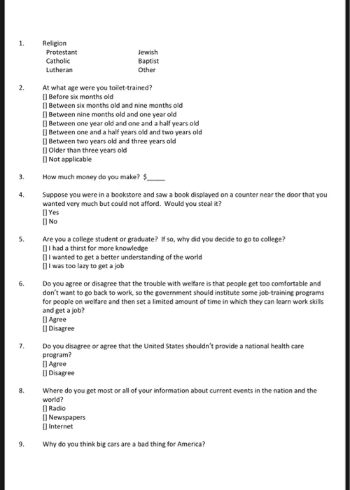 Solved 1 Religion Protestant Jewish Catholic Baptist Chegg com