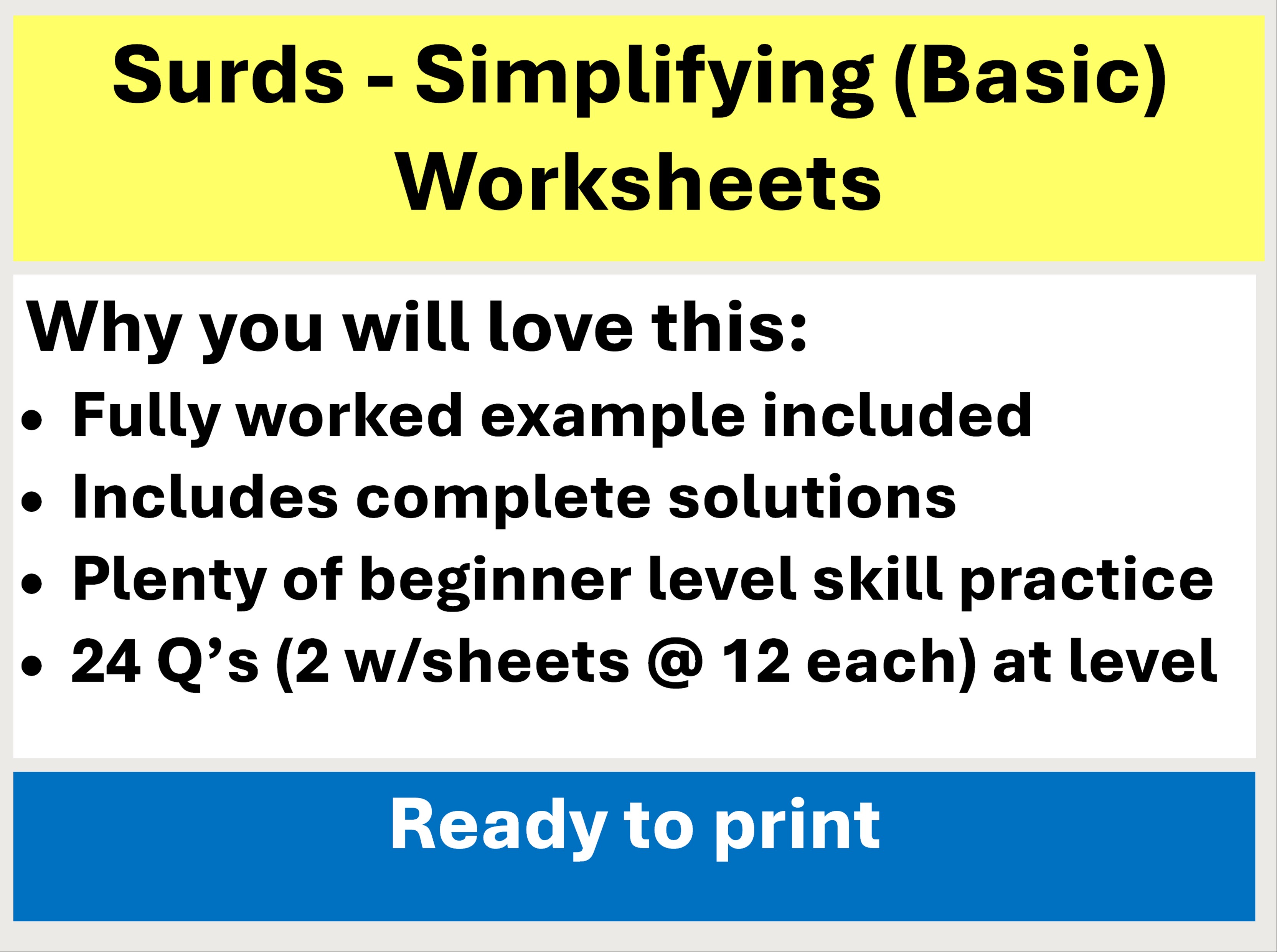 Simplifying Surds Introductory lesson worksheets Teaching Resources
