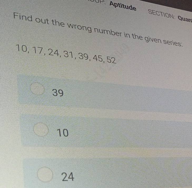 Solved: JUP: Aptitude SECTION: Quan Find out the wrong number in the