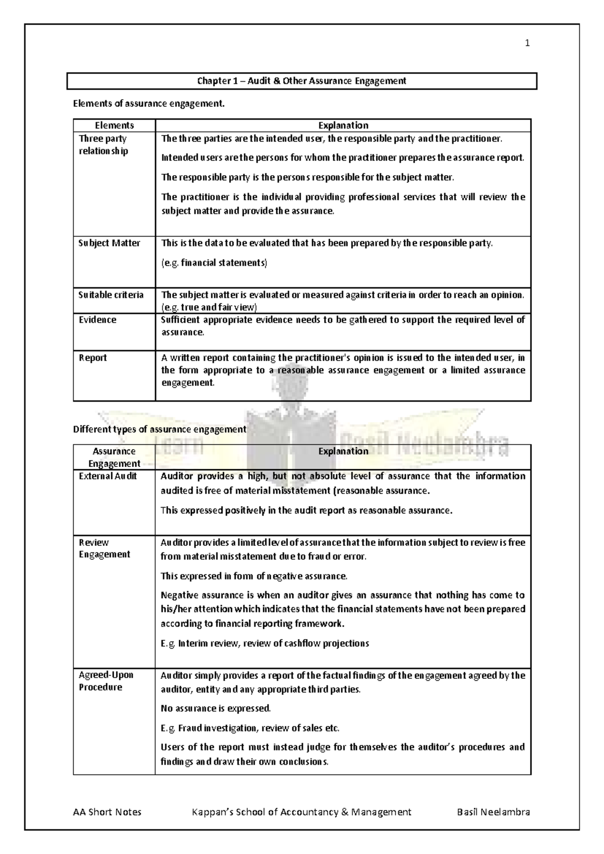 AA Short Notes: Chapter 1 Audit Assurance Engagement Elements Studocu