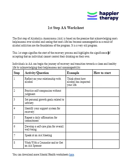 Free aa 1st step worksheet Download Free aa 1st step worksheet png