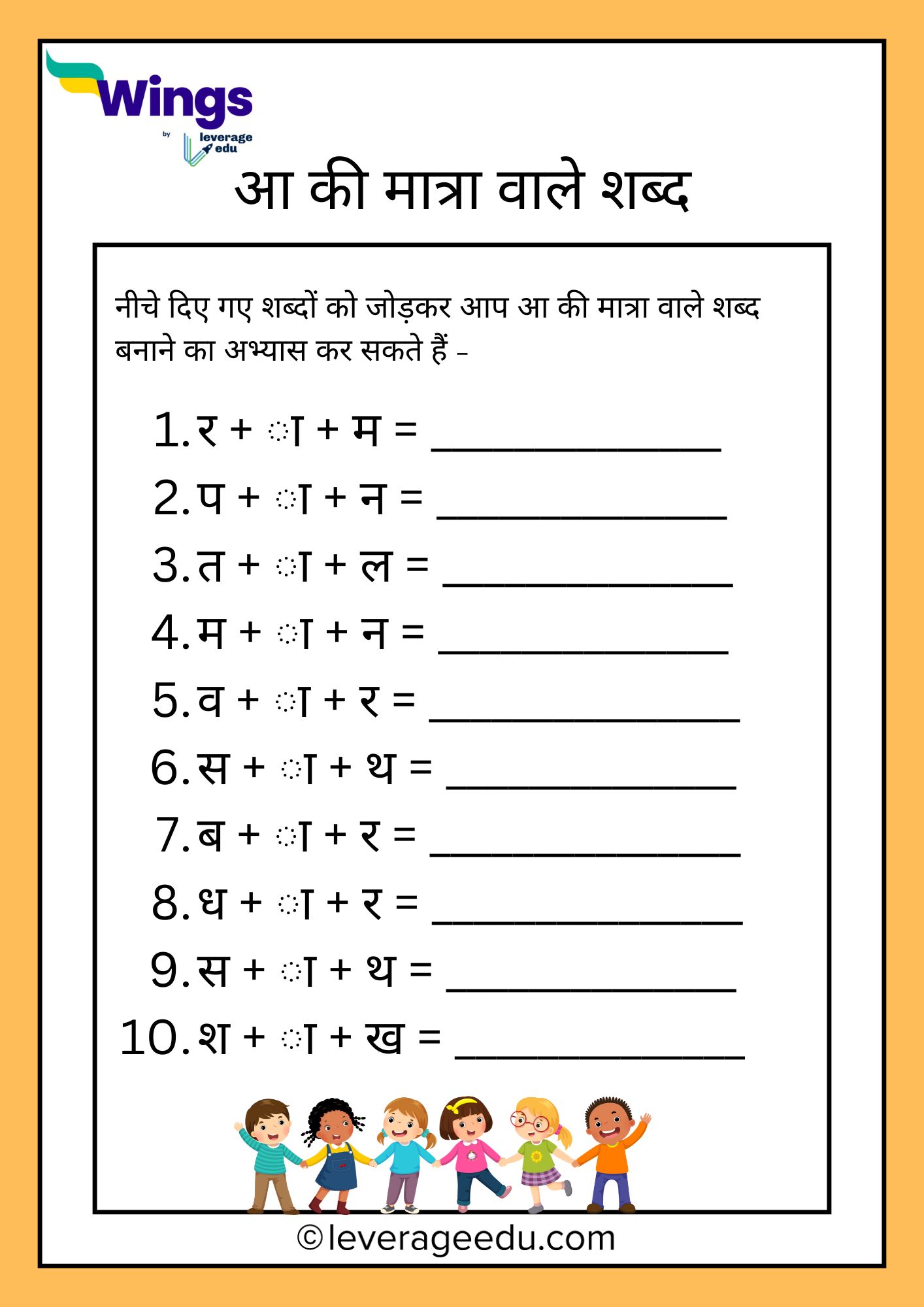 Hindi Aa Ki Matra Wale Shabd Worksheet Generator