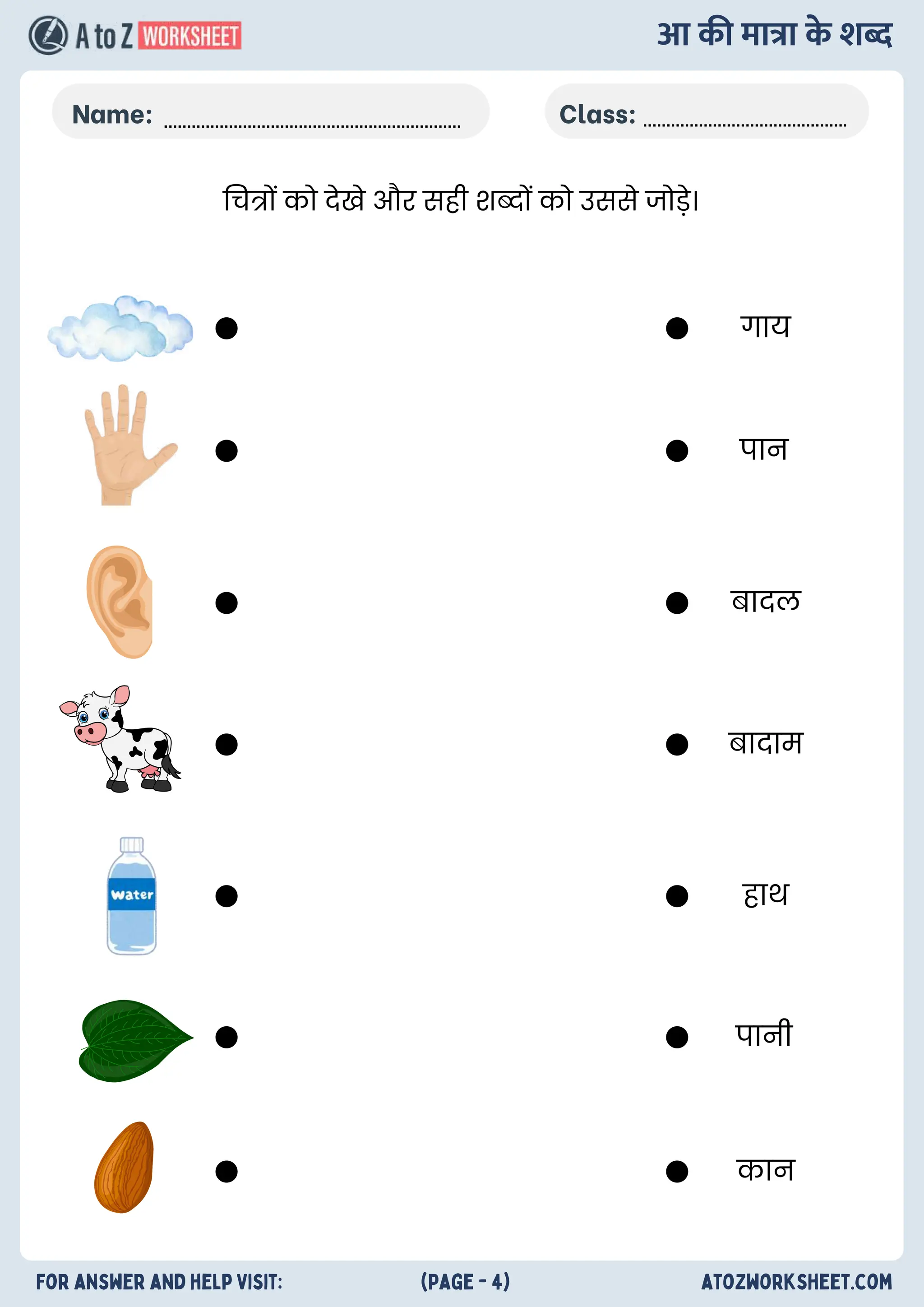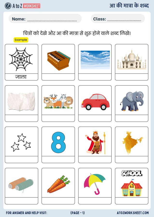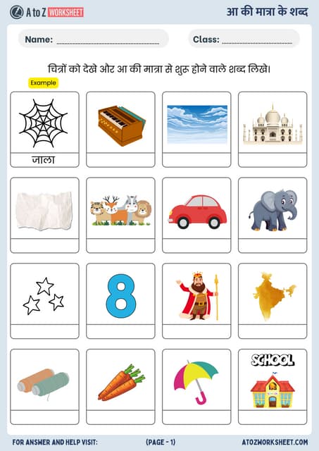 Aa Ki Matra Ke Shabd Worksheets (आ की मात्रा के शब्द वर्कशीट) A to Z
