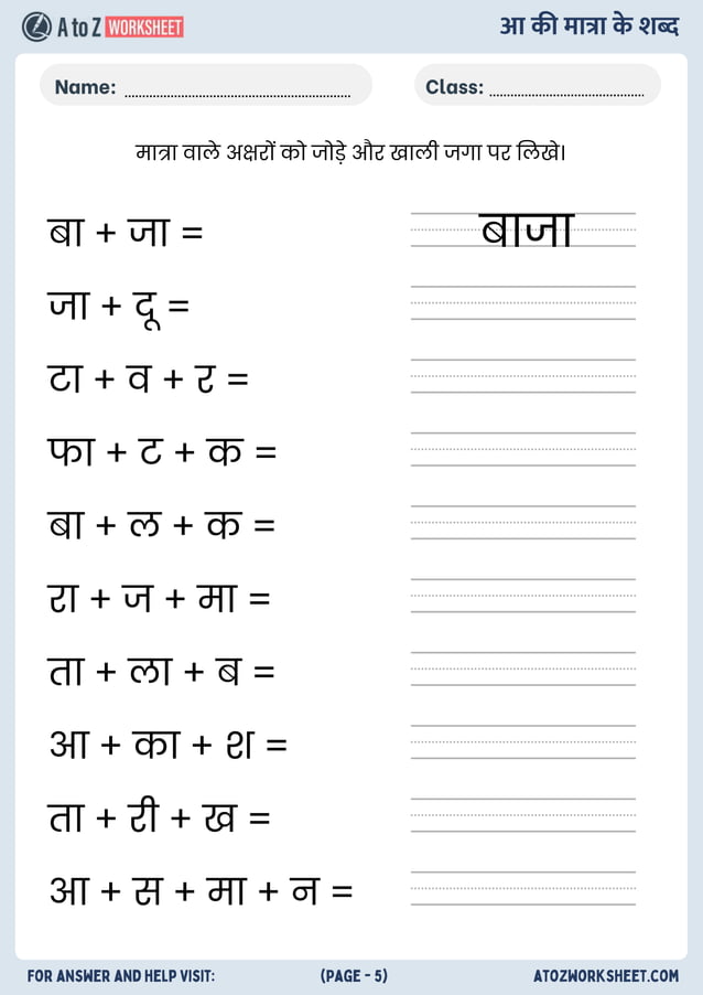 Aa ki matra ke shabd 5 skoolon com