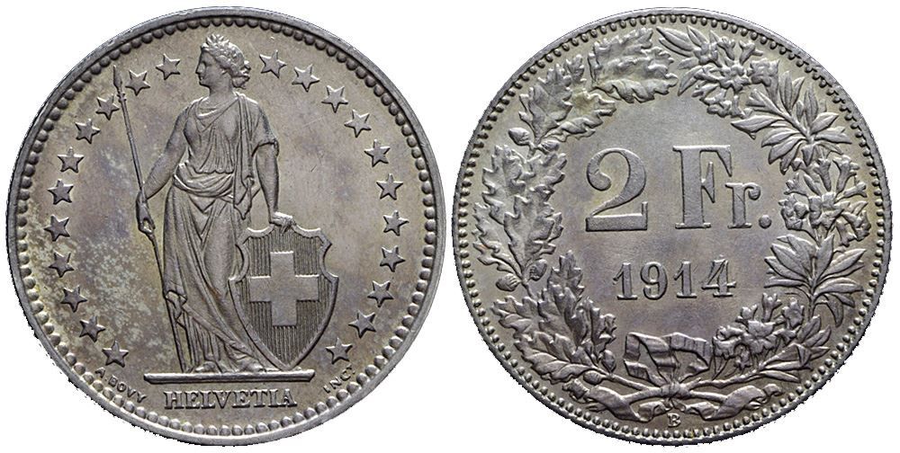 b 2 Franken 1914 (aa) (Usato) a Chiasso per CHF 124 con consegna