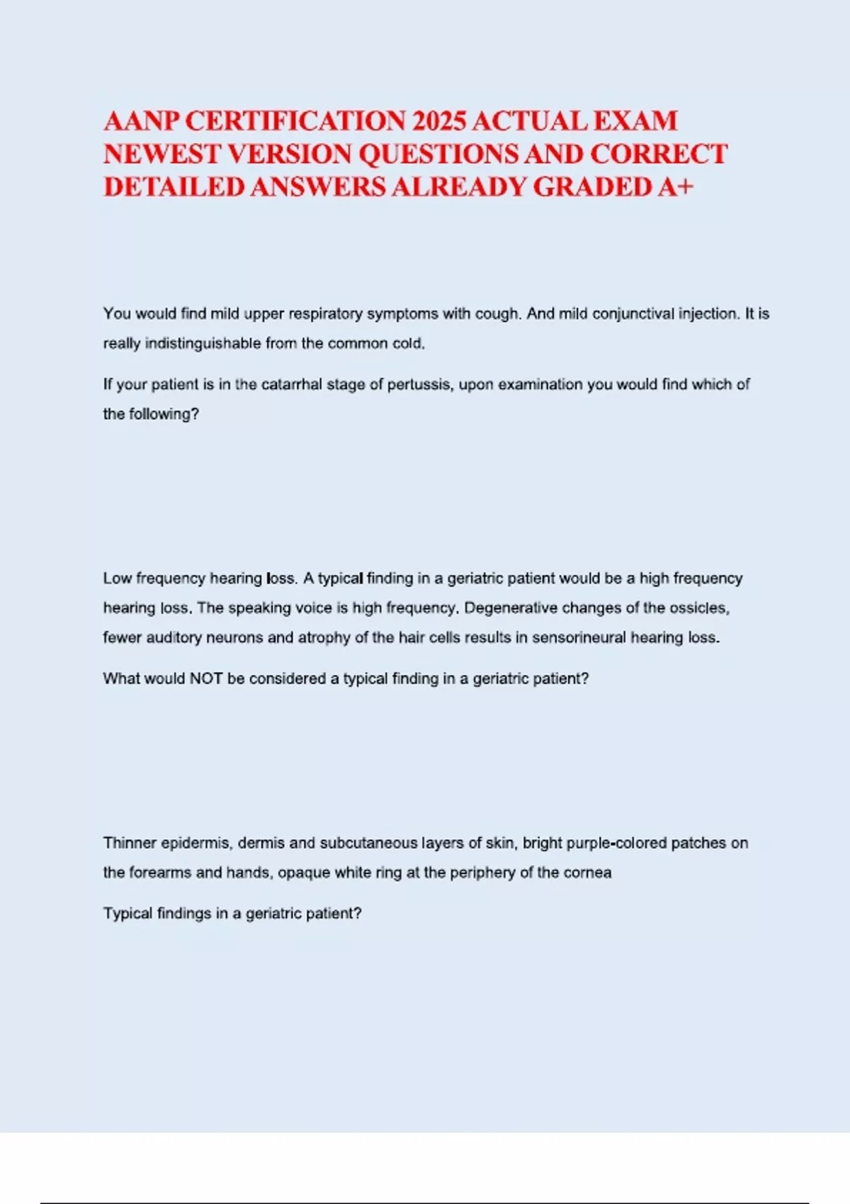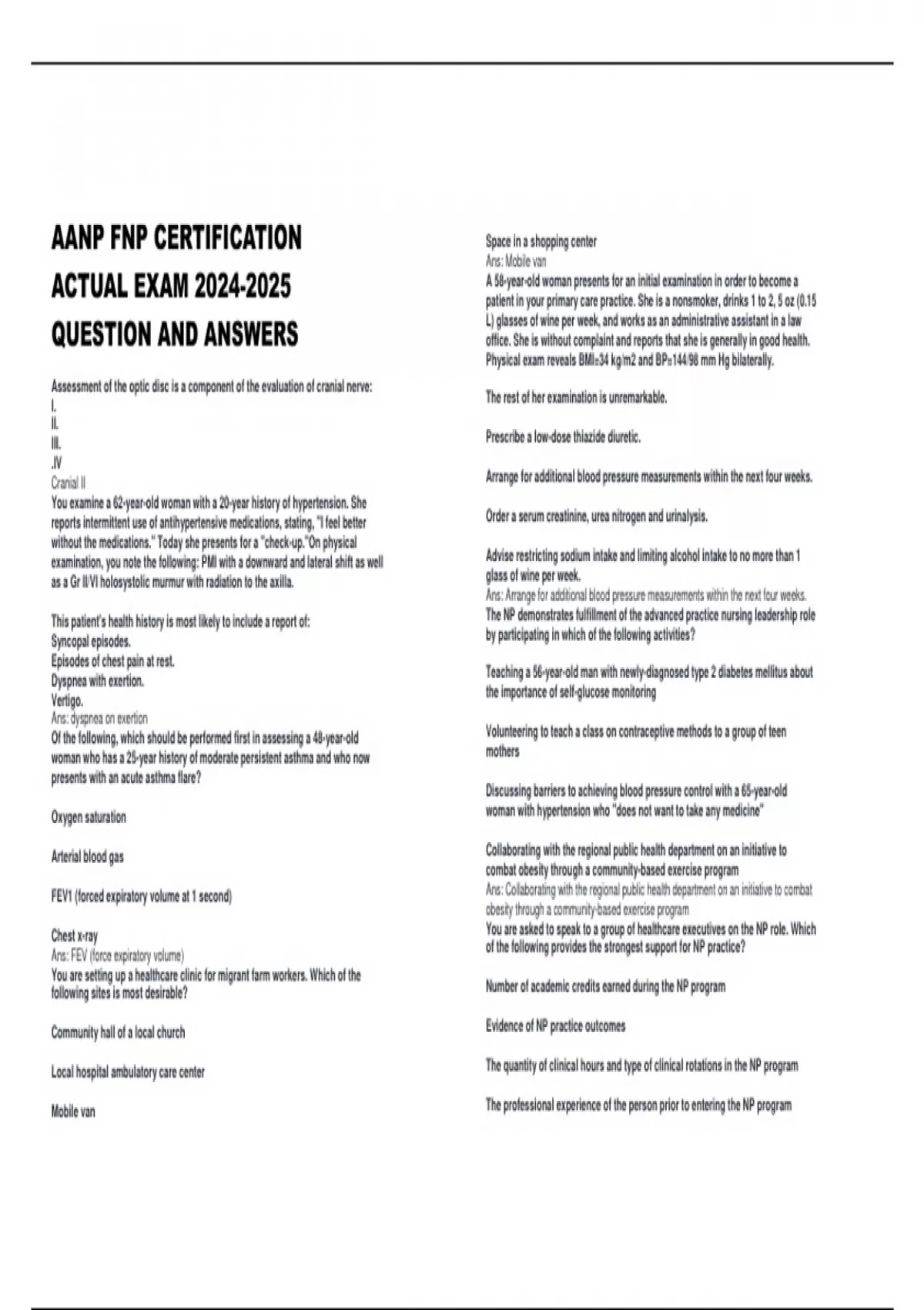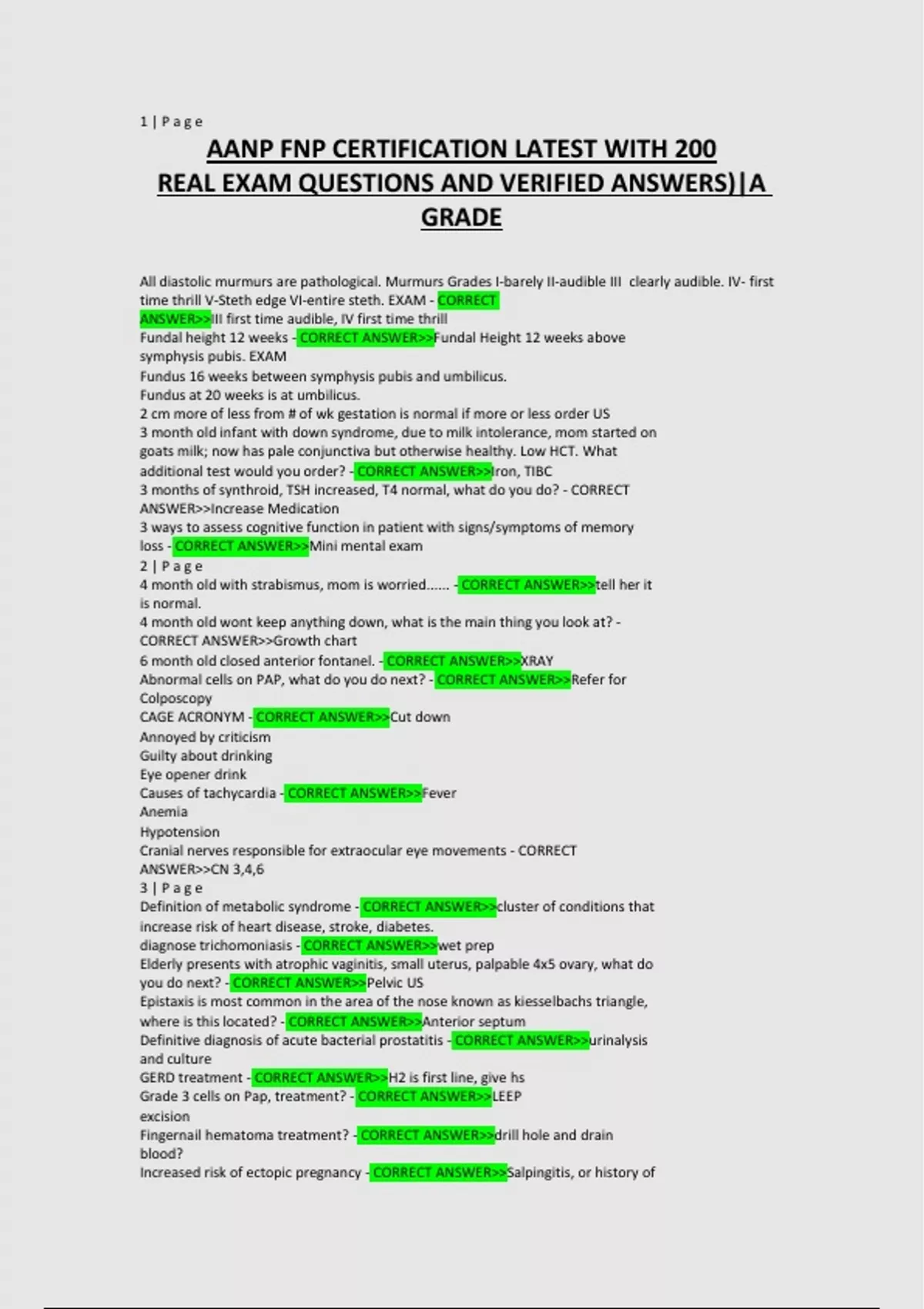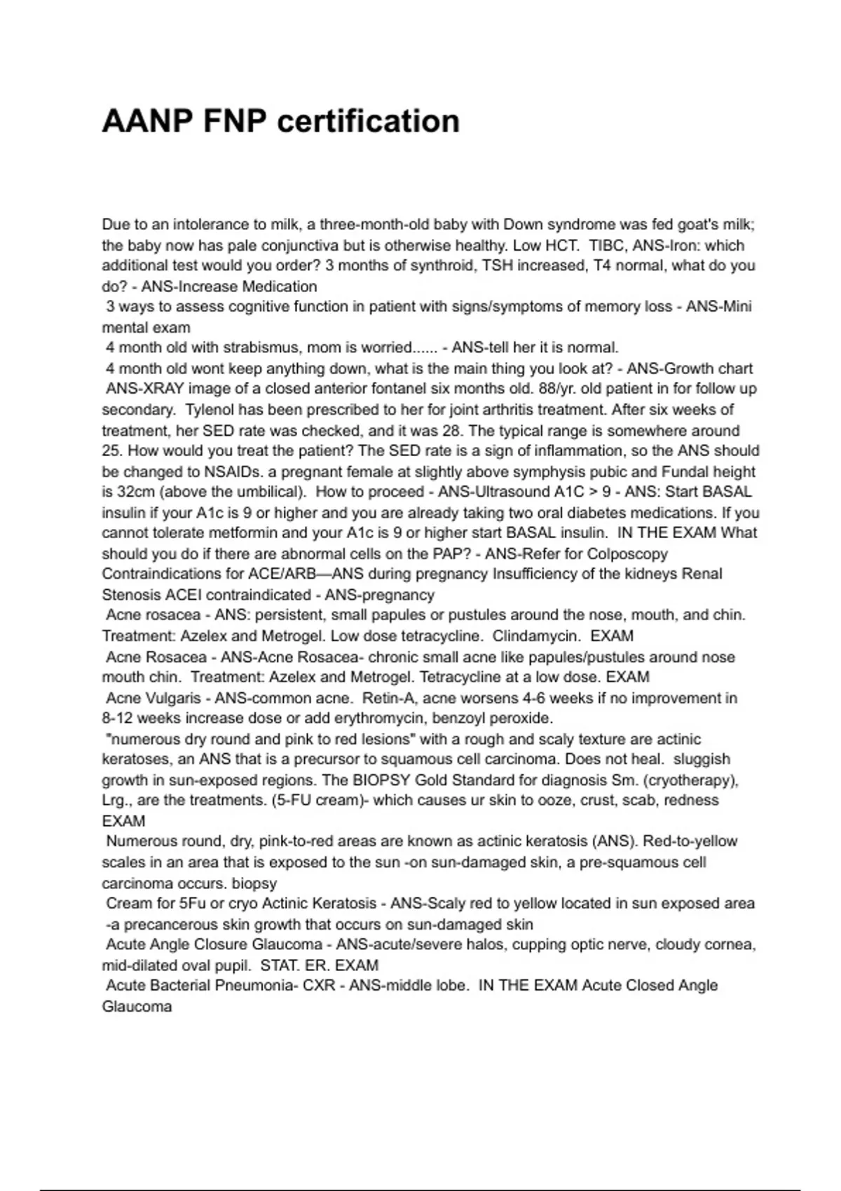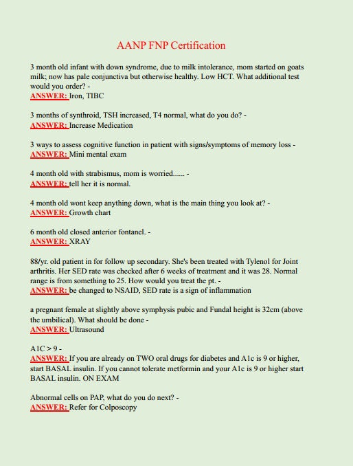 AANP FNP CERTIFICATION QUESTIONS WITH CORRECT ANSWERS AANP FNP