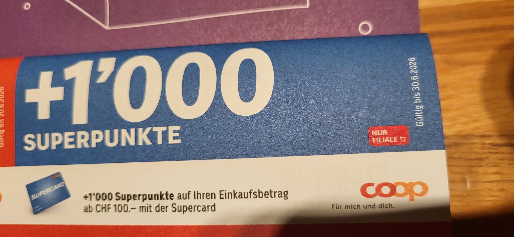 Gültig bis 06/2026: Coop 1000 Superpunkte ab CHF 100 (Neuf (Voir