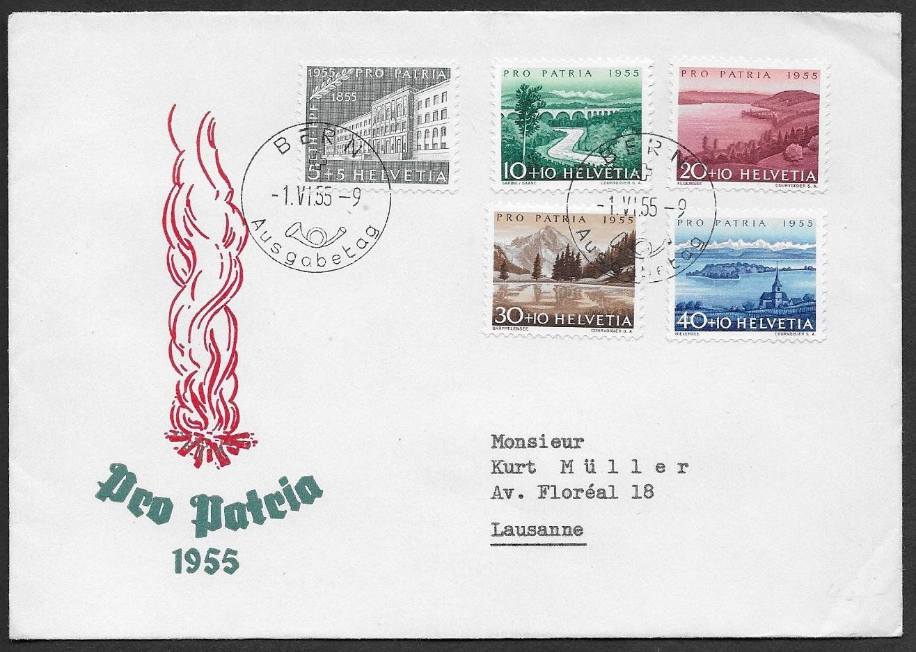 1955 FDC (P3) illust BERN 1 VI AUSGABETAG top ab 1 (Gebraucht) in