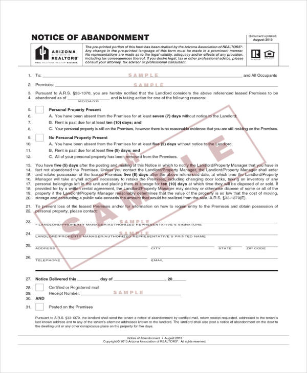 FREE 14 Abandonment Notice Templates in PDF MS Word