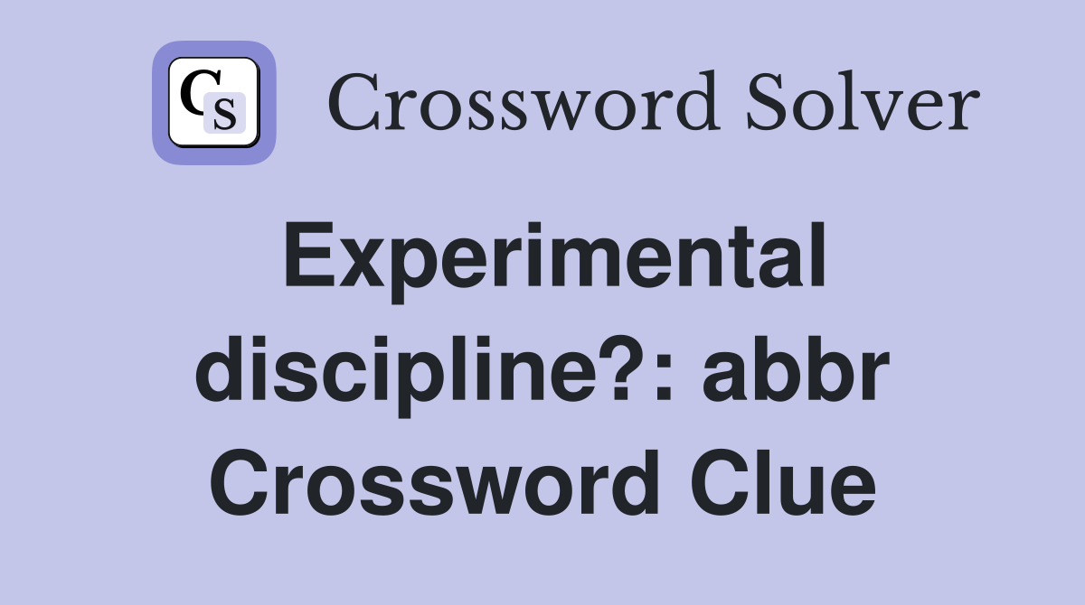 Experimental discipline?: abbr Crossword Clue Answers Crossword Solver