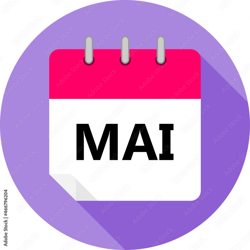 white and pink calendar page with MAI month abbreviation in Brazilian