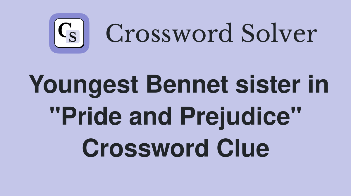 Youngest Bennet sister in quot Pride and Prejudice quot Crossword Clue