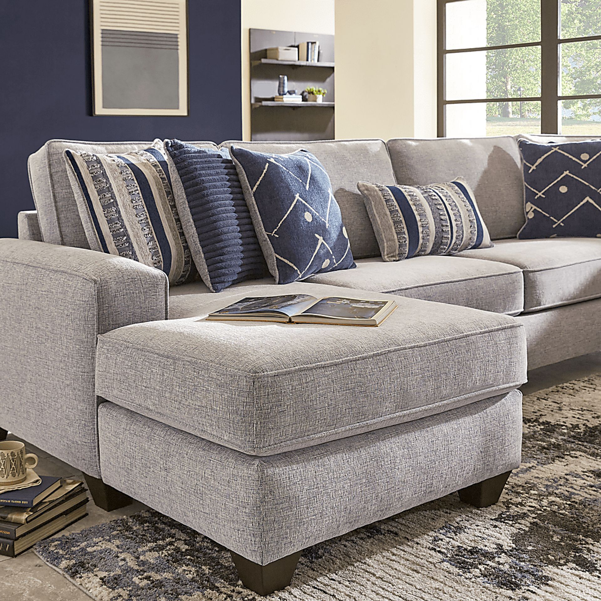 Aberlin Court Blue Polyester Fabric 3 Pc Right Arm Chaise Sectional