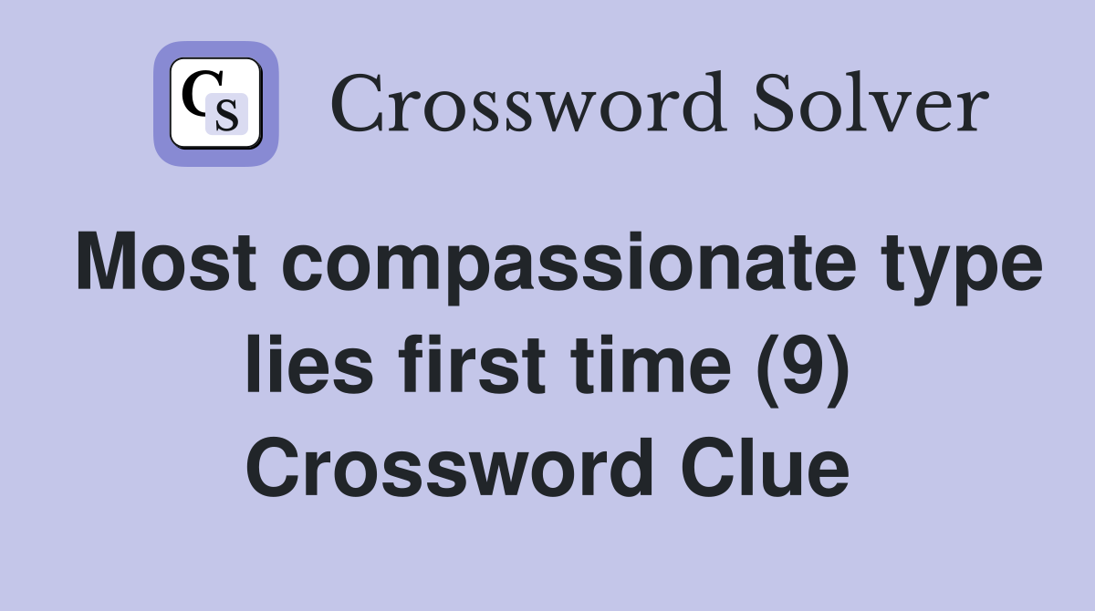 Most compassionate type lies first time (9) Crossword Clue Answers