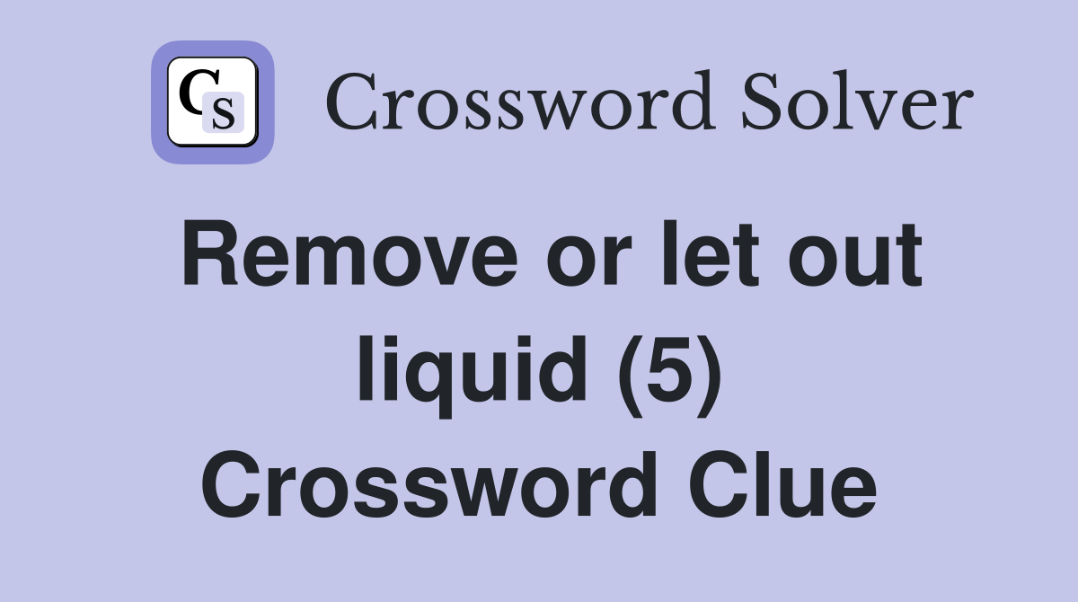 Remove or let out liquid (5) Crossword Clue Answers Crossword Solver