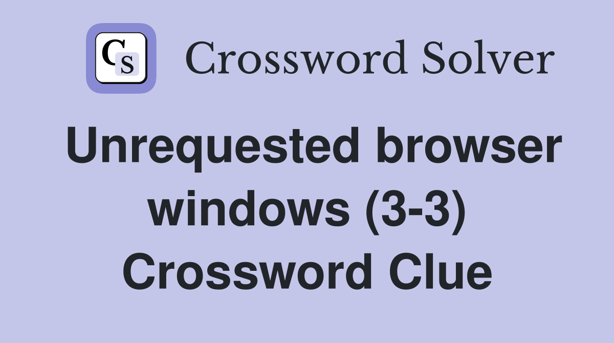 Unrequested browser windows (3 3) Crossword Clue Answers Crossword