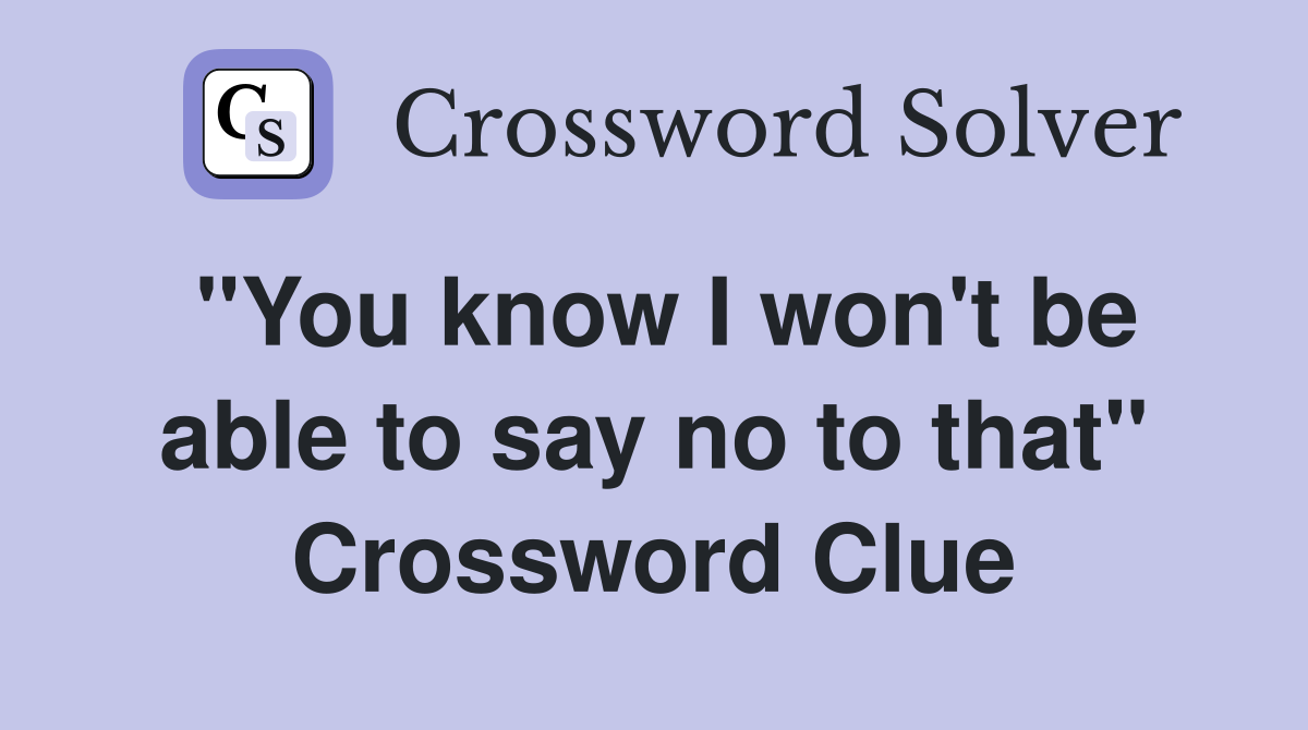 quot You know I won #39 t be able to say no to that quot Crossword Clue Answers