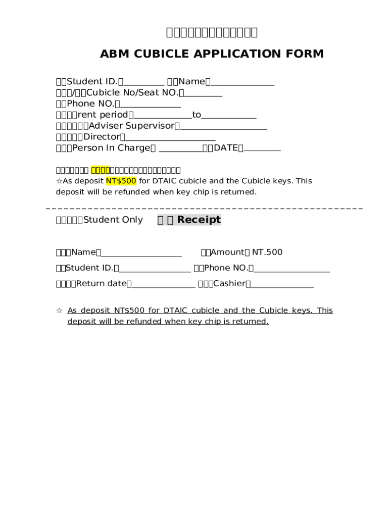 ABM CUBICLE APPLICATION Doc Template pdfFiller