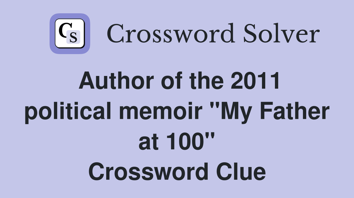 Author of the 2011 political memoir quot My Father at 100 quot Crossword Clue