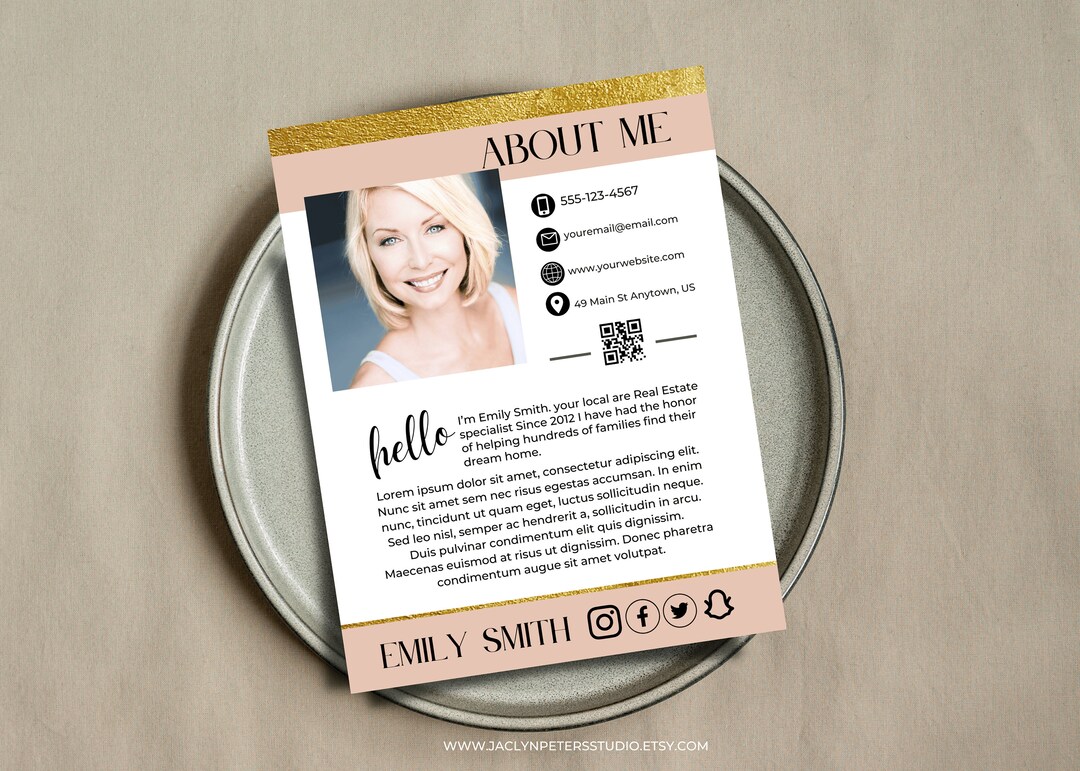About Me Page Editable Canva Template Real Estate Agent Bio Etsy