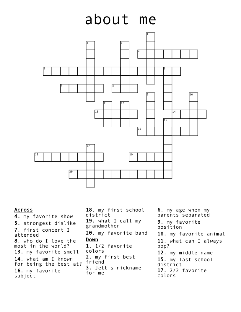 About Me Crossword WordMint