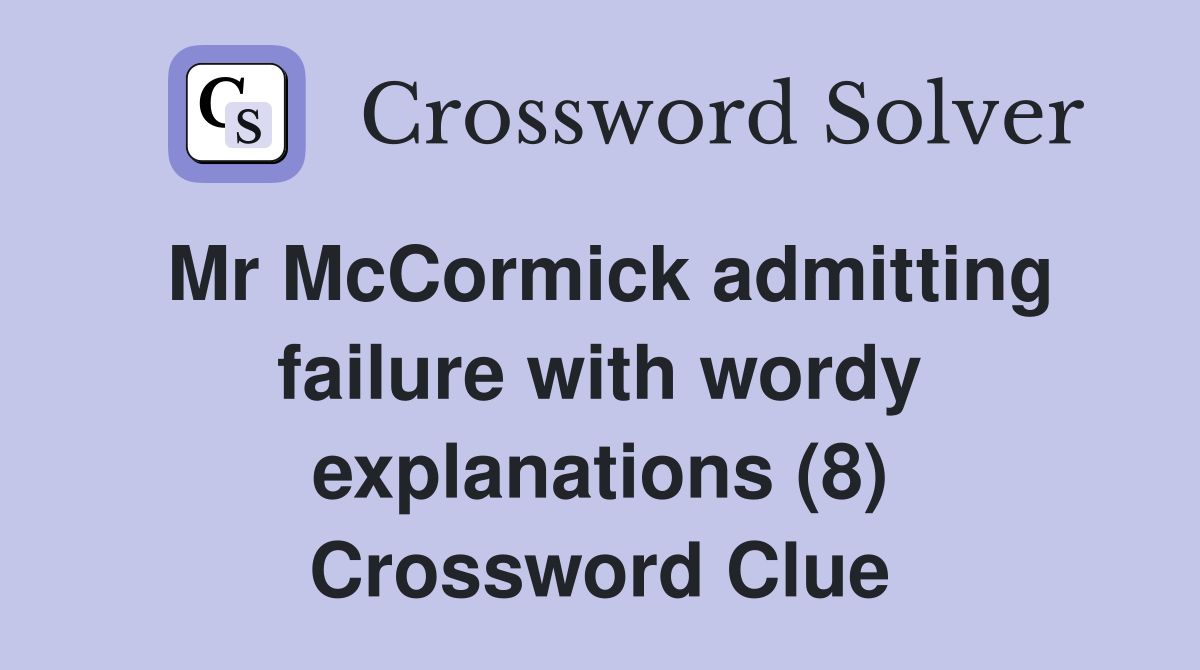 Mr McCormick admitting failure with wordy explanations (8) Crossword