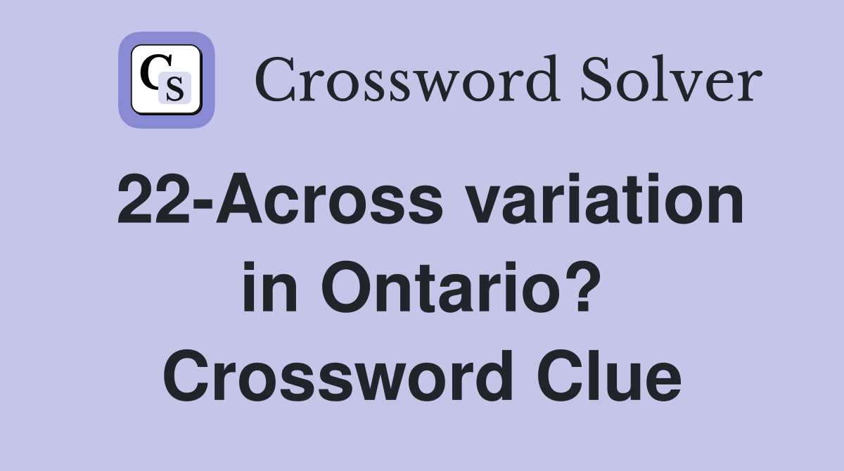 22 Across variation in Ontario? Crossword Clue Answers Crossword Solver