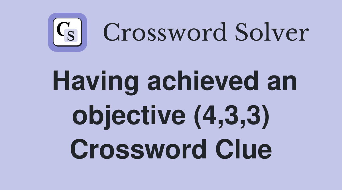 Having achieved an objective (4 3 3) Crossword Clue Answers
