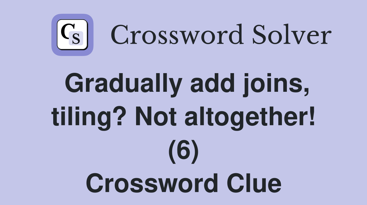 Gradually add joins tiling? Not altogether (6) Crossword Clue