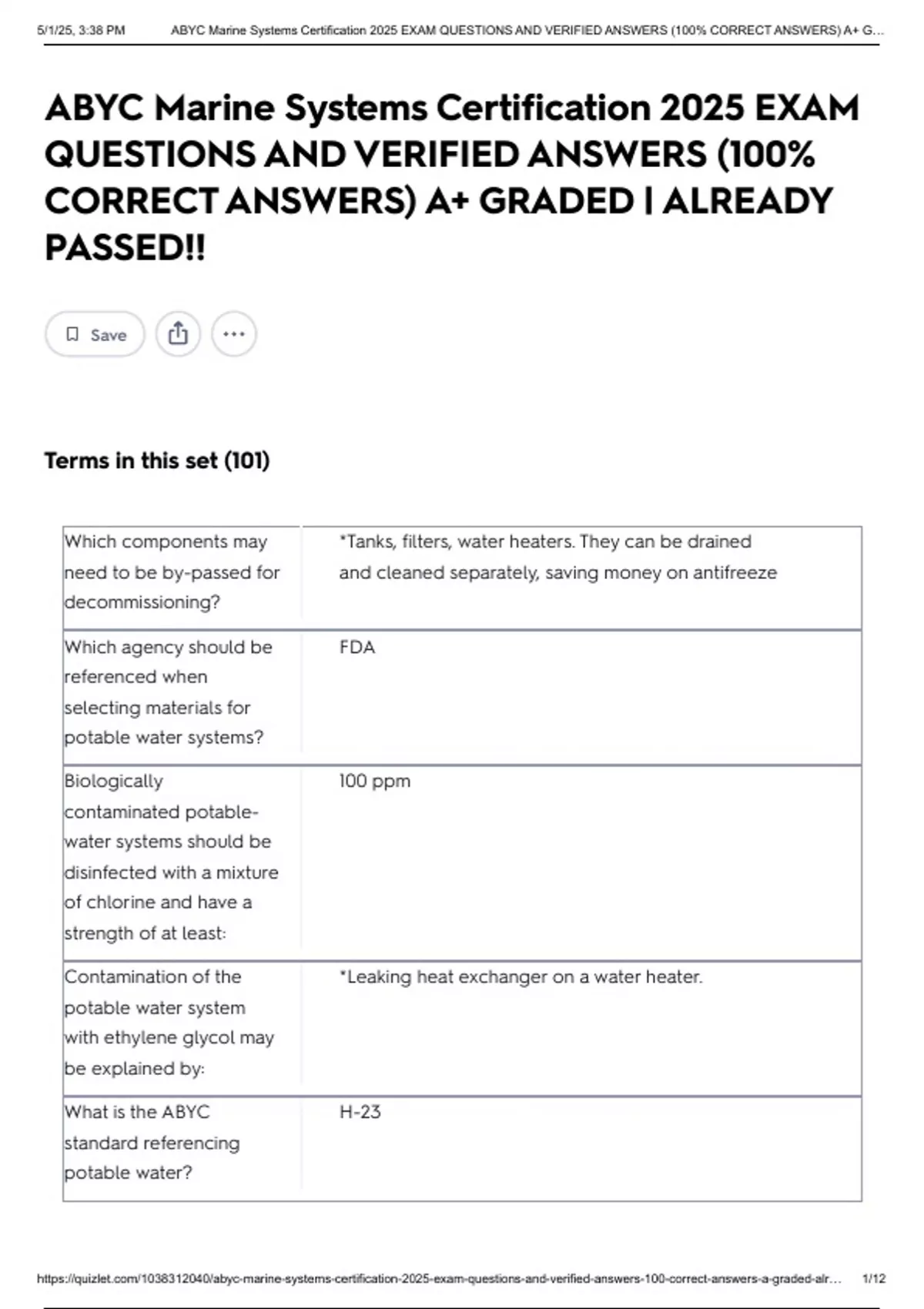ABYC DIESEL CERTIFICATION 2024 QUESTIONS WITH 100% VERIFIED ANSWERS