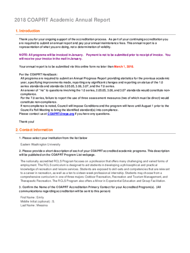 Fillable Online rmpe appstate edusitesrmpe2018 COAPRT Academic Annual
