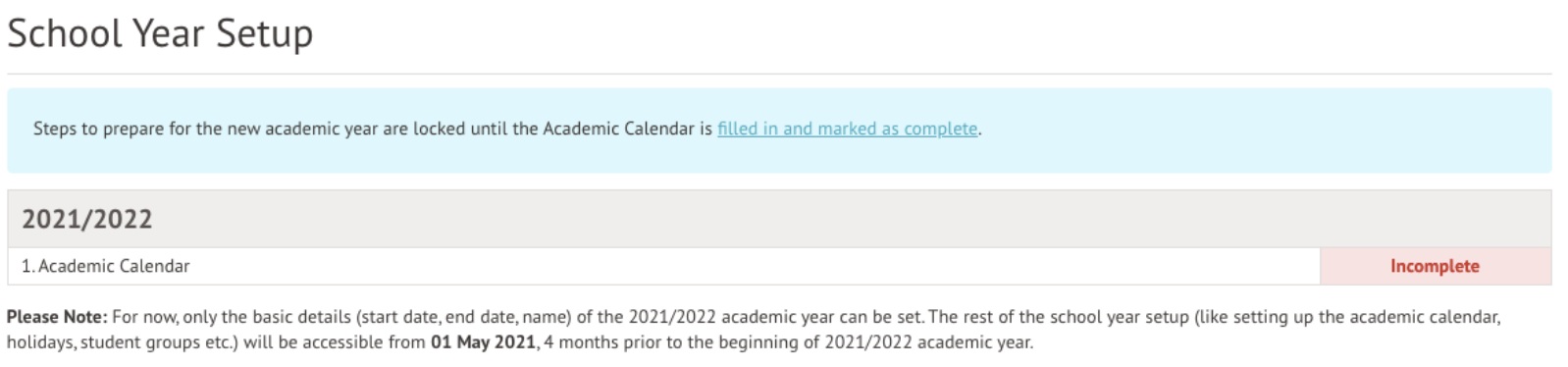 Academic Calendar New School Year Setup (Step 1) Arbor Help Centre