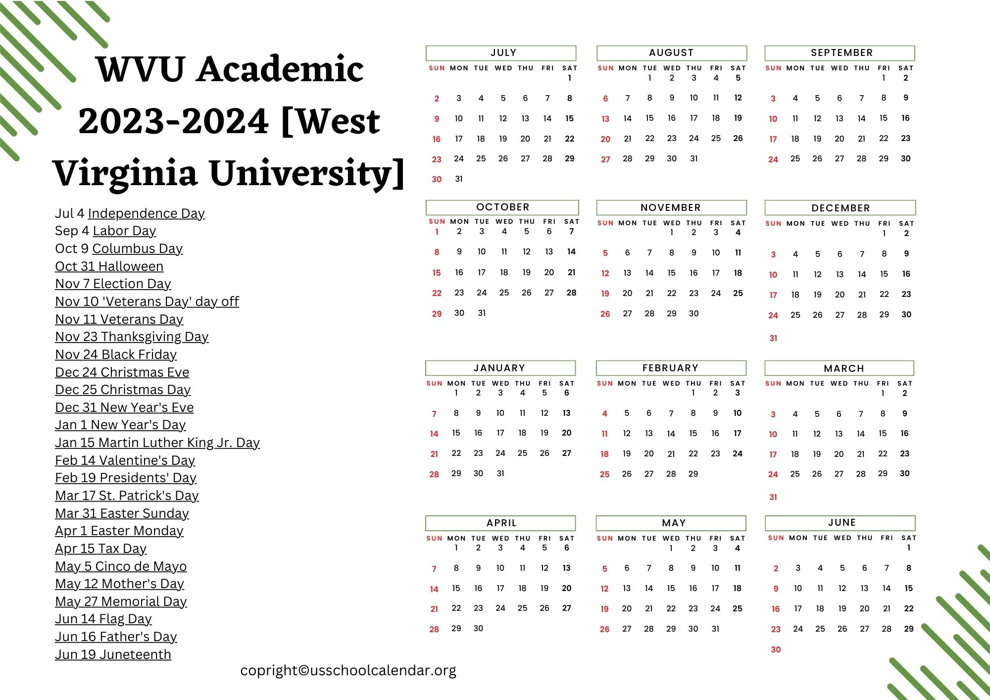 West Virginia University Academic Calendar US School Calendar