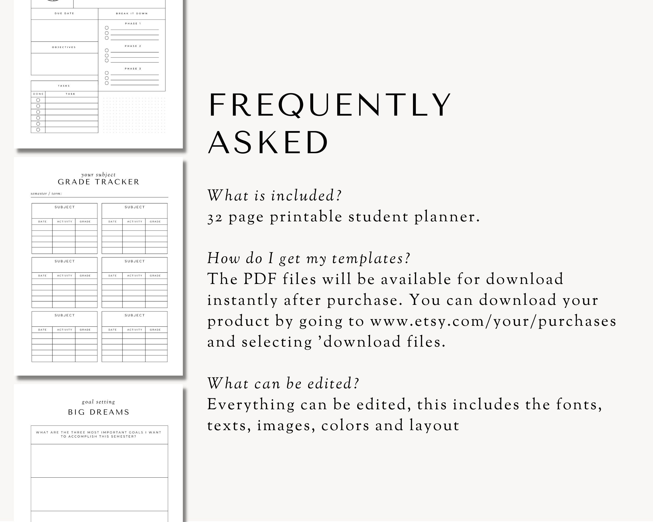 Student Academic Planner Printable Bundle Student Organizer Etsy