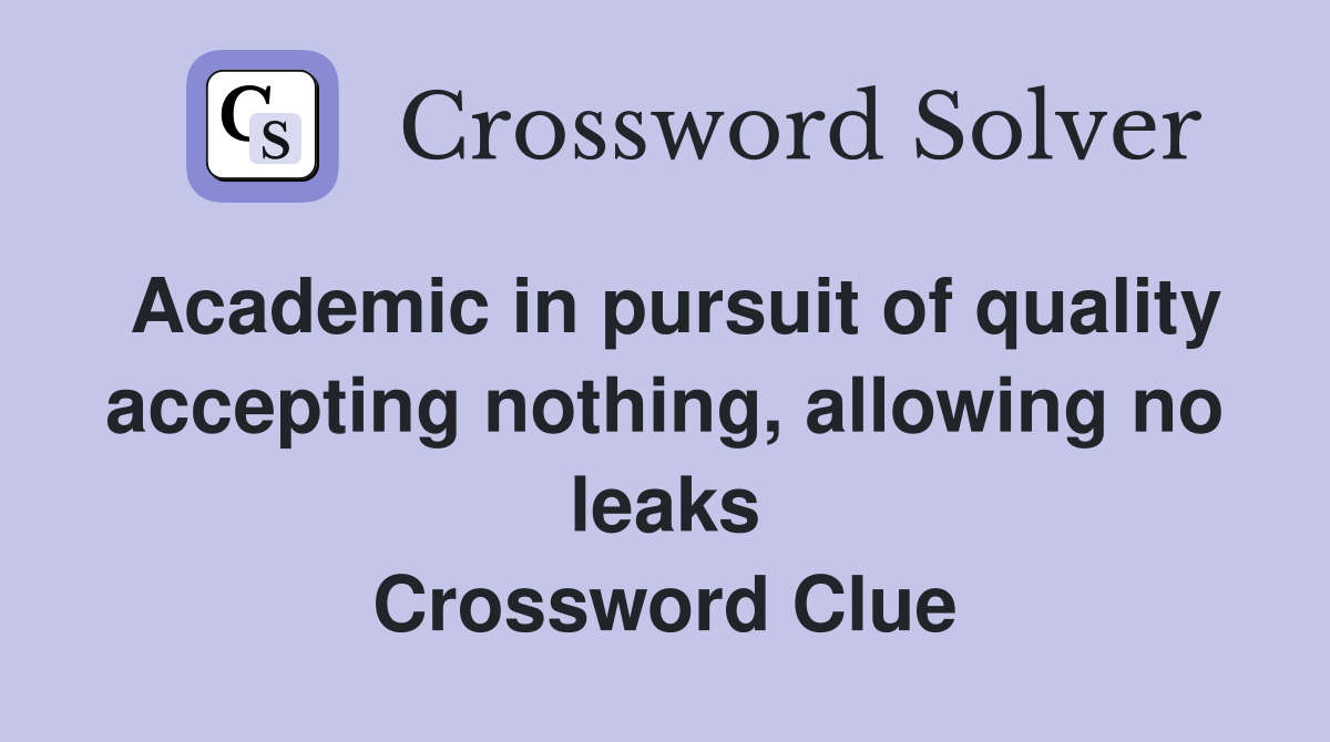 Academic in pursuit of quality accepting nothing allowing no leaks