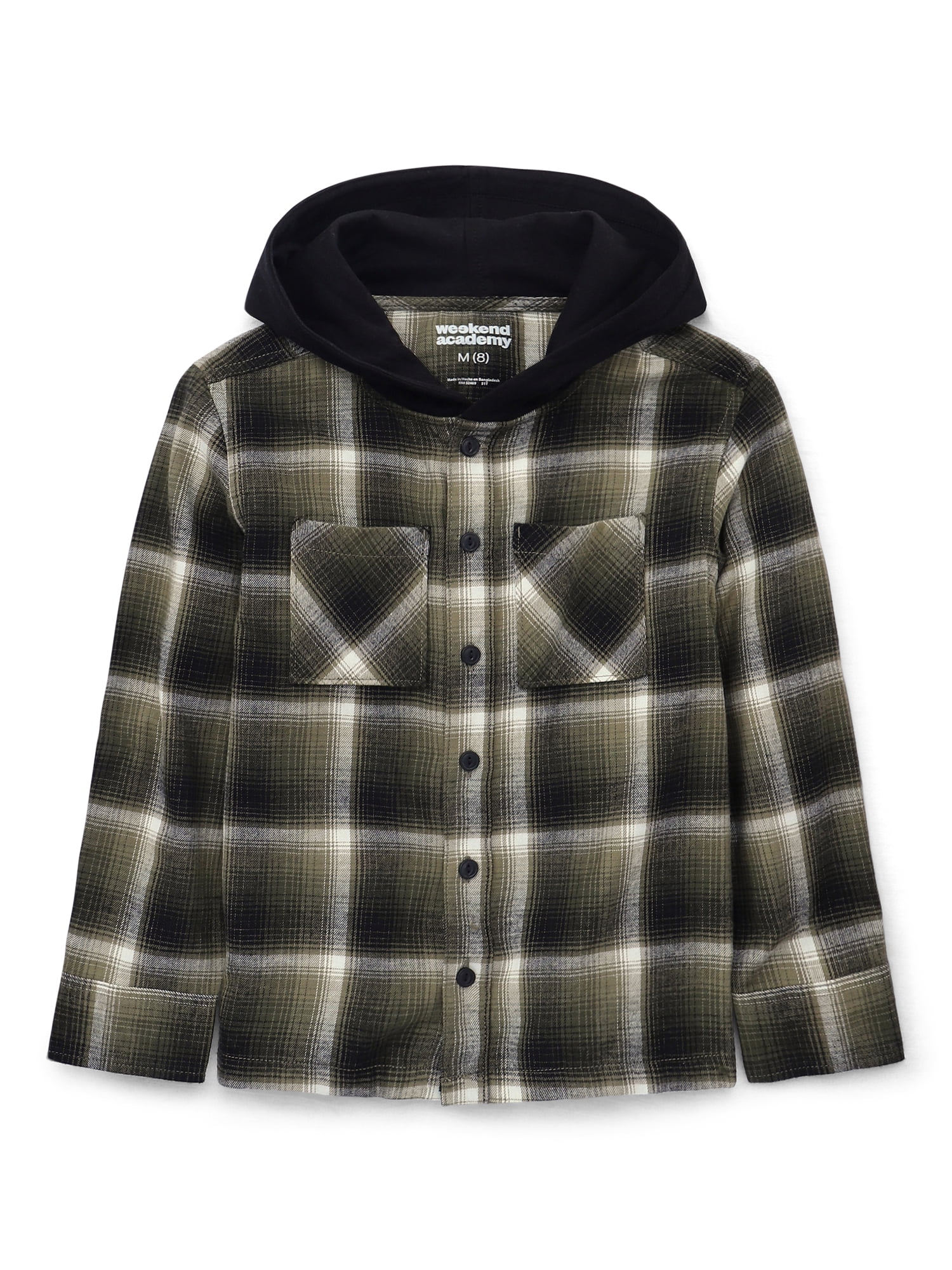 Weekend Academy Boys Hooded Flannel Shacket Sizes 4 18 Walmart com