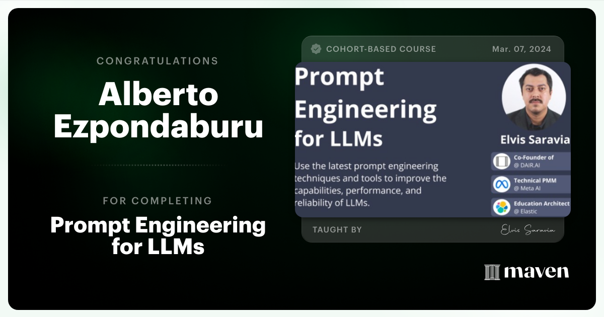 Certificate of Completion for Advanced Prompt Engineering for LLMs