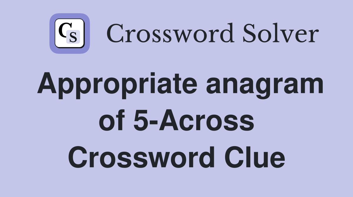 Appropriate anagram of 5 Across Crossword Clue Answers Crossword Solver